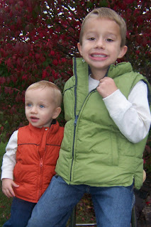 Me: Colton, can you please change your shirt and put your vest on so I can take some pictures of you and your brother outside?